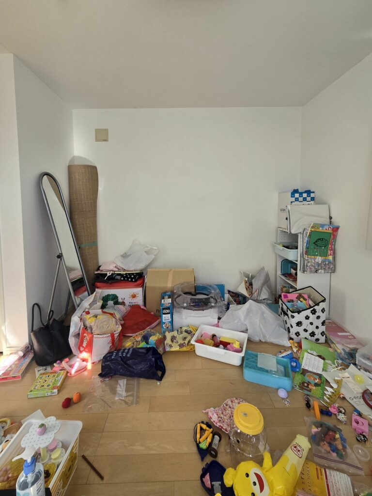 昔使っていたモノ、本、作品、処分を後回しにしたモノなど、とりあえずこの部屋に詰め込まれてきました。ママと整理をしてる間に同時進行でレイアウト変更をして、寝室に生まれ変わりました。帰宅後に「すごーい!」と大はしゃぎのお子様の姿に、ママも嬉しくなったお片づけでした。(4時間×3人)東京都/K様 戸建て 4人家族