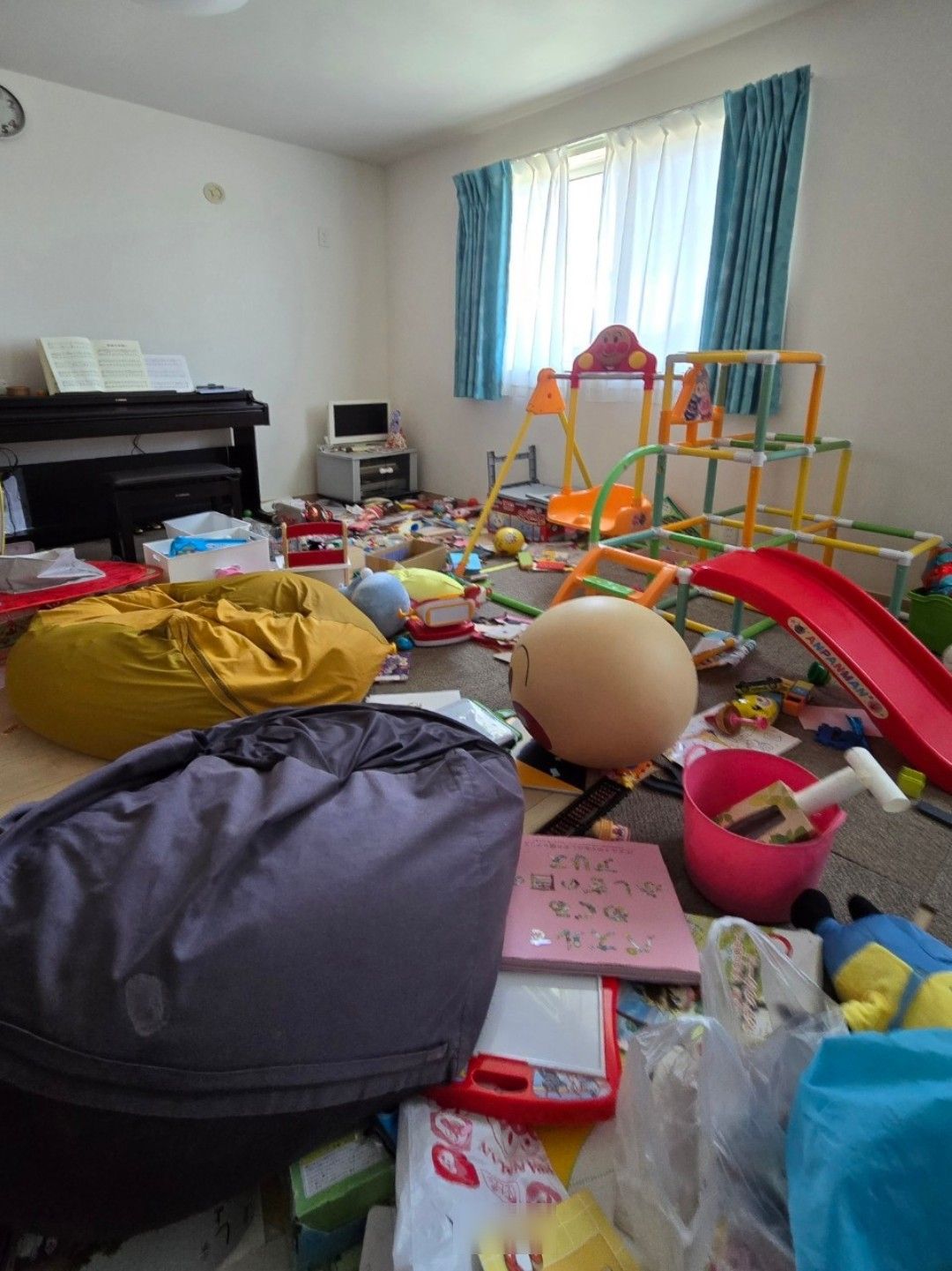 おねぇちゃんに部屋を作るべく、おもちゃ部屋を片付け、リビングワークスペースを次女ちゃんへ。小上がりスペースも同時進行。